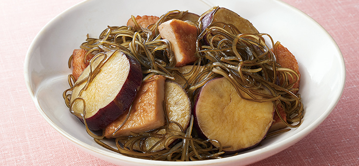 昆布とさつまあげの旨みが甘みのあるさつまいもとよく合い、食べごたえもある一品。