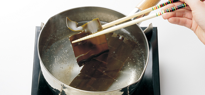 ■基本の昆布だしのとり方1Lあたり昆布を10g使用する、濃い昆布だしのとり方。