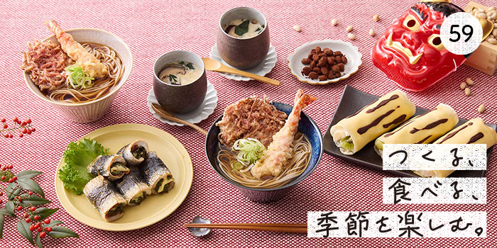 福を呼び込み、家族の健康や幸せを願う節分。恵方巻や福豆などの料理を食卓に並べて、昔ながらの風習を楽しみながら、心もお腹も満たされるひとときを。