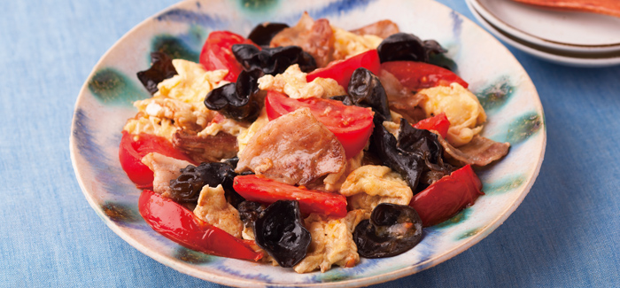 きくらげと卵、ビタミンDが豊富な食材を組み合わせたひと皿。コリコリしたきくらげとふわふわした卵の食感の違いも楽しめます。