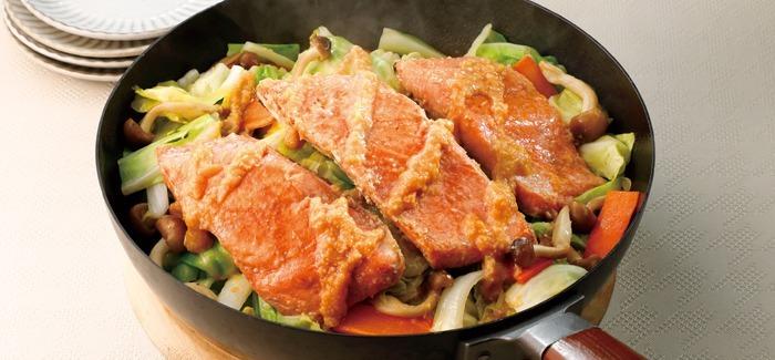 ■フライパンで秋鮭のちゃんちゃん焼き