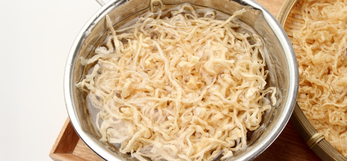 もどした後、湯通しして冷ましてからサラダや和え物に。煮物とは違ったシャキシャキとした食感を楽しめます。エスニック風、洋風、中華風の味つけもよくあいます。