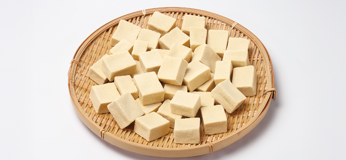 湯もどしなしで直接使える、カット済み高野豆腐です。国産大豆使用。